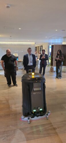 Durante la presentación, celebrada en un entorno real de trabajo como es el lobby del hotel, los asistentes pudieron ver en funcionamiento robots diseñados para la limpieza autónoma de grandes superficies, capaces de operar de forma segura y eficiente en espacios con tránsito de personas.